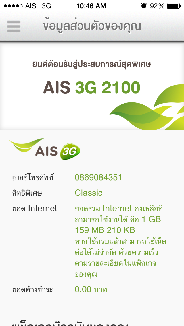 ผมเพิ่งย้ายค่ายมาใช้บริการของ AIS ครับ ใช้โปร 3G iSmart 899