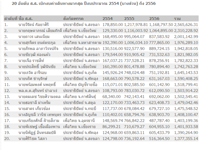 วิรัตน์ ณ ปชป. ซิวแชมป์เบิกงบเดินทาง 2.5 ล้าน "ยิ่งลักษณ์"กินบ๊วยเบิกแค่ 9,580 บาท ..ขำตาย !
