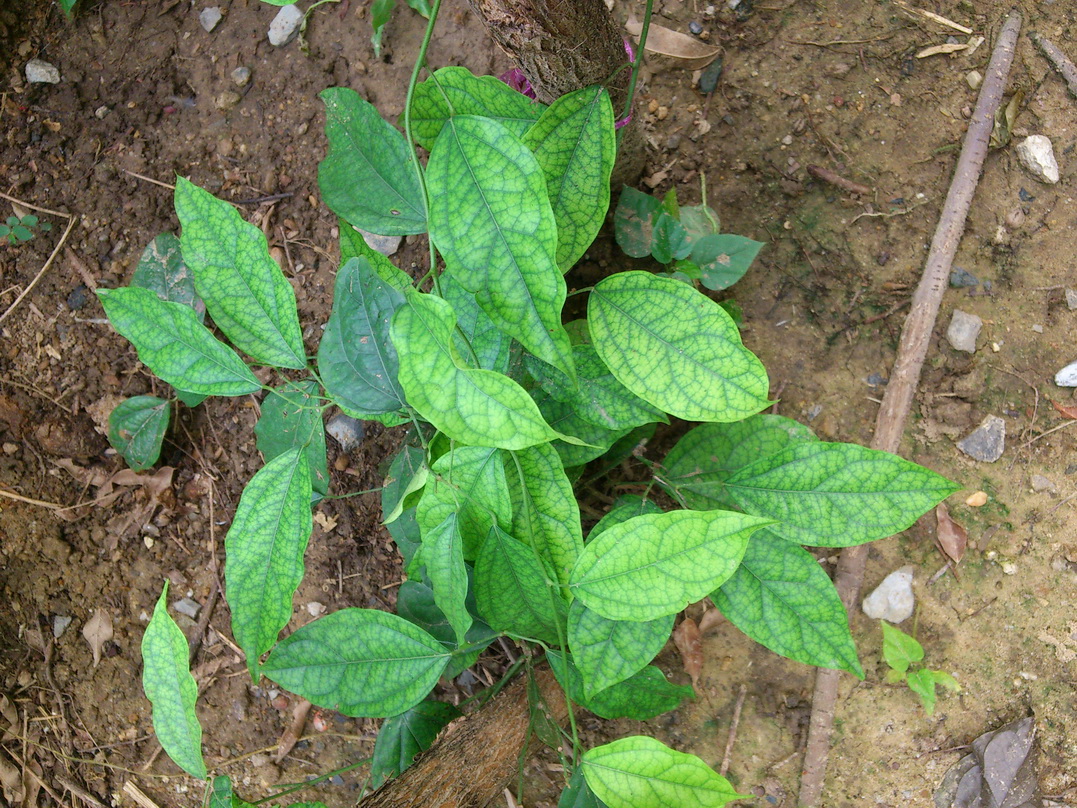อยากทราบว่า ใบในรูปนี้ คือใบของต้นย่านางหรือเปล่าครับ ทำไมมันออกเป็นเส้นๆ สีเหลืองๆ