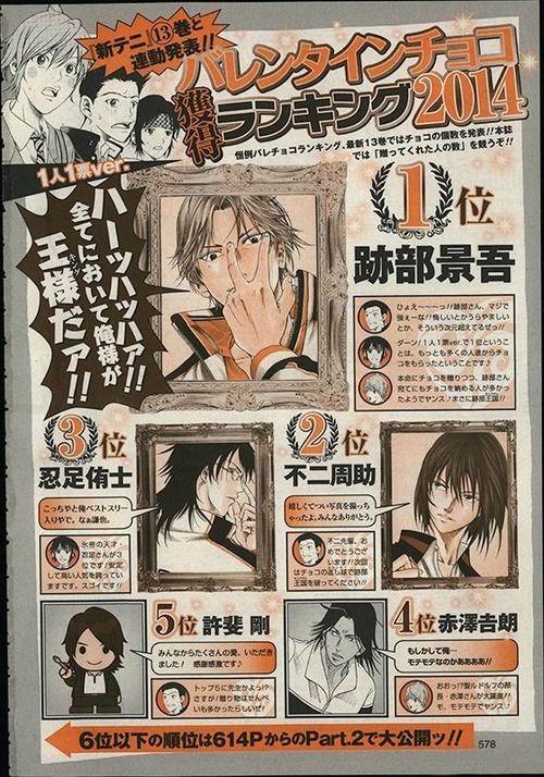 สงคราม fangirls ; Prince of tennis chocolate valentine ranking 2014