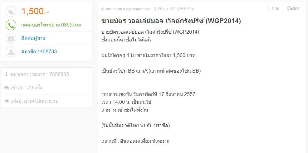 ราคาบัตร Volleyball World Grand Prix 2014 ที่มาขายต่อราคาแรงมาก