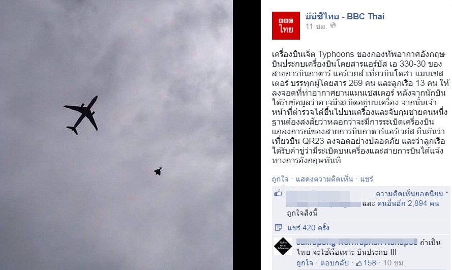 เครื่องบินเจ็ต Typhoons ของกองทัพอากาศอังกฤษบินประกบเครื่องบินโดยสารแอร์บัส เอ 330-30