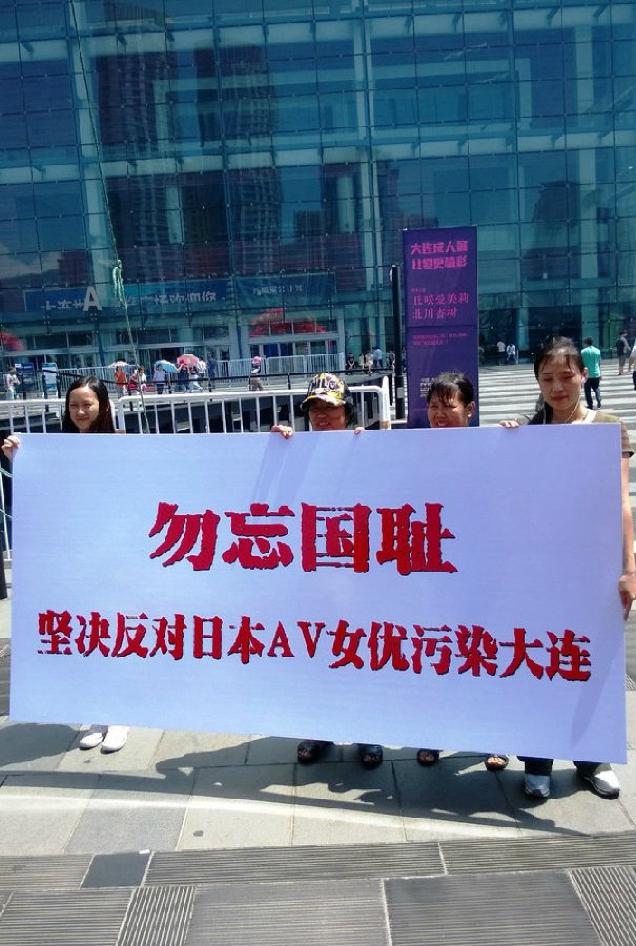 โดยป้ายผ้าของผู้ประท้วงคนหนึ่งยังมีข้อความที่แสดงจุดยืนของพวกเขาถึงชาวจีนที่เกี่ยวข้องกับงานอีเวนต์ที่มีการเชิญดาราชาวญี่ปุ่นมาร่วมงานว่า “หยุดทำให้ประเทศขายหน้าเสียที!!” ส่วนป้ายผ้าของผู้ประท้วงอีกคนก็เขียนข้อความว่า “หยุดสร้างมลพิษให้ต้านเหลียนด้วยดาราหนังโป๊ชาวญี่ปุ่นพวกนี้ได้แล้ว!!”