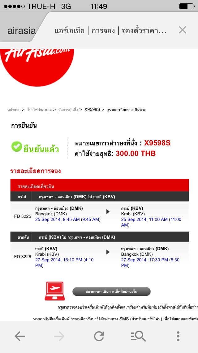 พอดีเราจองโปร ที่พักพร้อมบินฟรี ไปกะบี่ ทำการจองมีเมล์คอนเฟริมเรียบร้อย เลยลองเข้าไปairasia เพื่อลองเชคสถานะการ booking