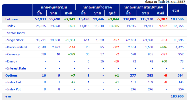 สรุปยอดTFEX 24/1/57 Index สถาบัน+ต่างชาติเปิดShort ในประเทศLong...วันจันทร์สยิวกิ้ว