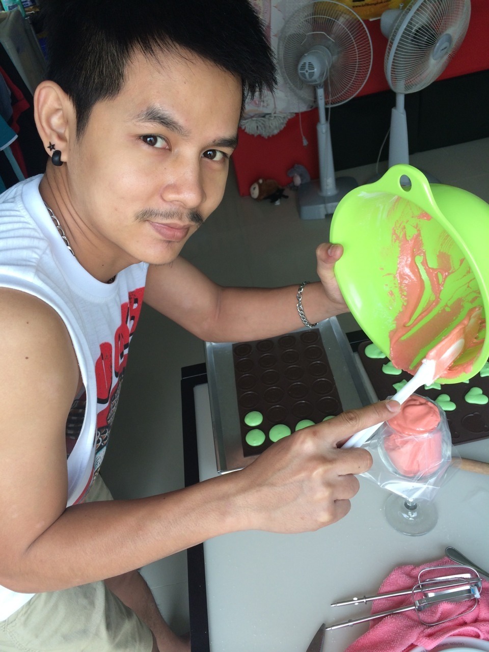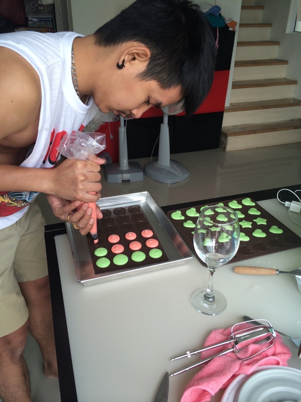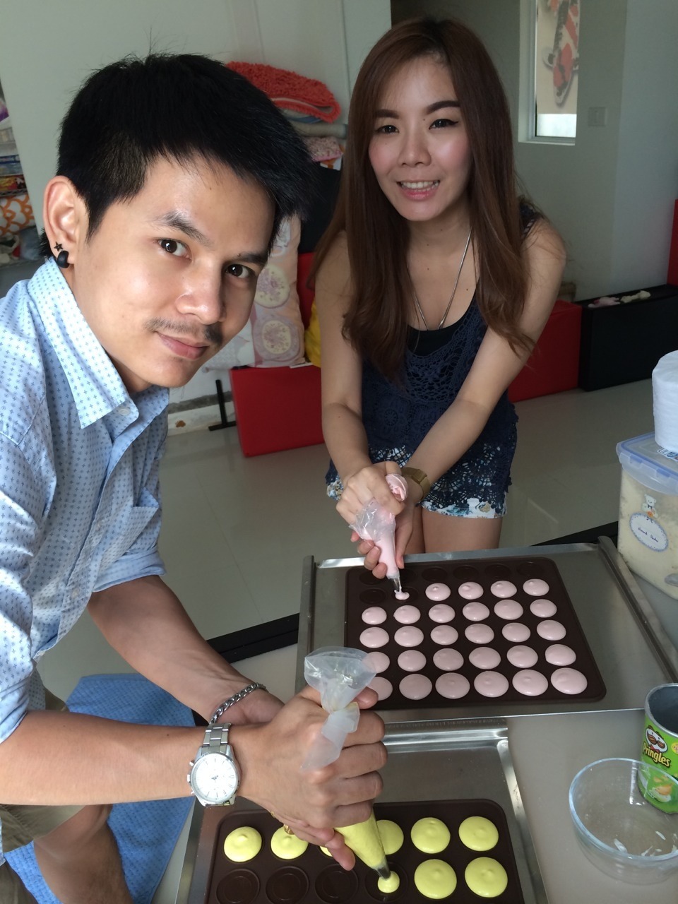 วันนี้พี่สาวมาขอทำมาการองด้วย ตั้งใจเรียนนะ เดี๋ยวน้องสอนเต็มที่ (พี่สาวจะทำขนมไปฝากแฟน น้องชายเลยต้องรับหน้าที่เป็นคุณครูวันนึง)