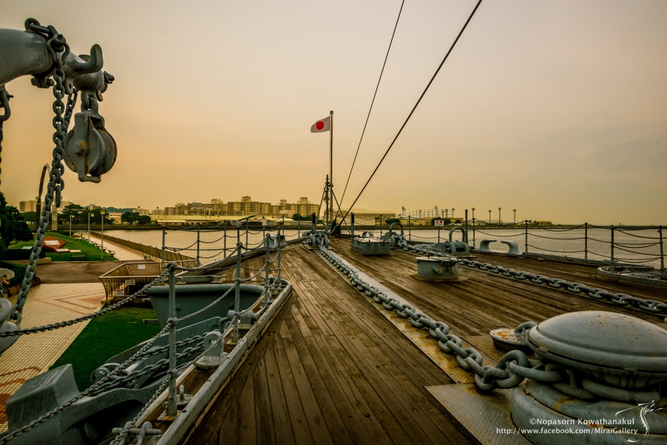 เมื่อขึ้นมาบนเรือต้องยอมรับเลยครับ ว่าญี่ปุ่นค่อนข้างเก็บรักษาเรือนี้ไว้อย่างดี แทบจะดูไม่ออกเลยว่าเป็นเรือที่อยู่ตั้งแต่ยุคสงคราม (ลายบนเรือนั้นน้ำฝนนะครับ เผอิญวันนั้นฝนตกครับ ไม่ใช่เรือเก่านะครับ)