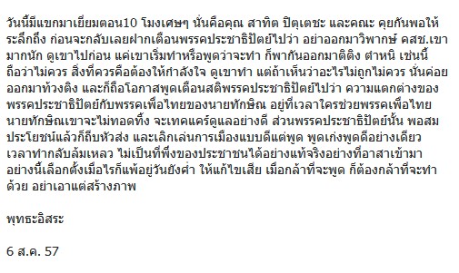 ยอมได้ไง มันพูดแบบนี้ ทำให้พรรคเราเสียหายหมด ผมไปเจอในเฟสมา มันเอาพรรคเราไปประจาน กล่าวหาว่าเราชนะเลือกตั้งมาตลอดกว่า 20 ปี ชนะแบบยับเยินอีกต่างฟาก ไม่ย๊อมมมมม ว่าแล้วเชียวไอ้นี่ มันต้องเล่นเราจนได้
