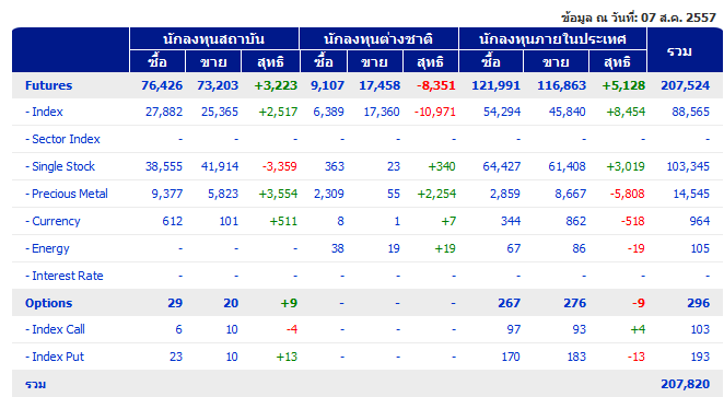 24/7/57 ต่างชาติ Short index future 3,404 สัญญา