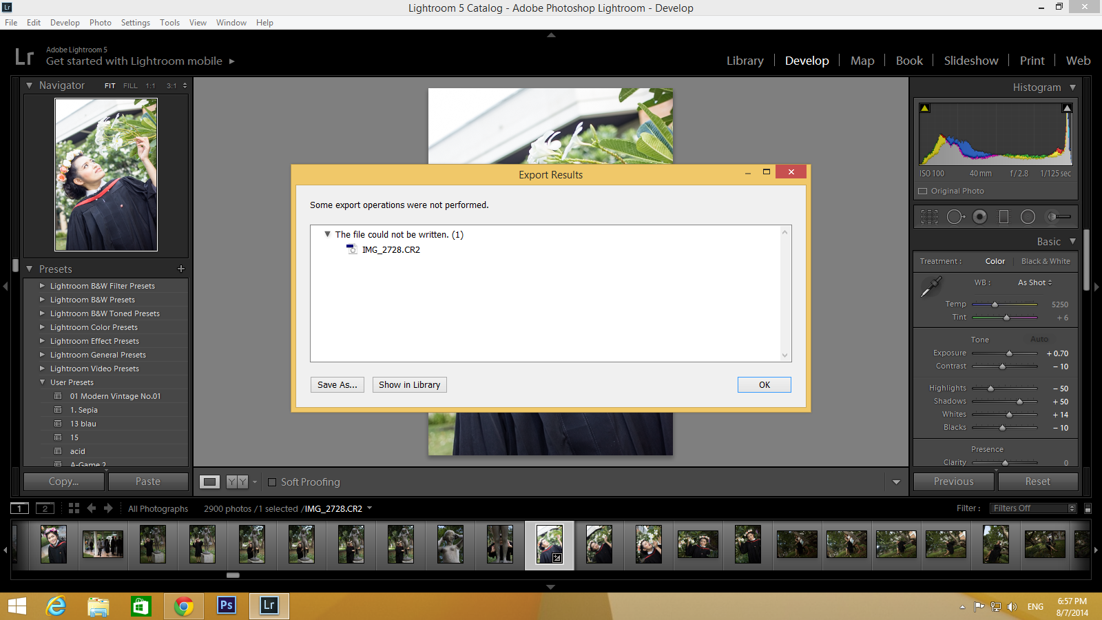 ตอนเปิด Lightroom ลองคลิกขวาแล้วเลือกให้รันเป็น Admin ครับ....