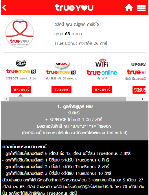 เช็คว่าสิทธิ true you เต็มไหมก่อนกดredeem