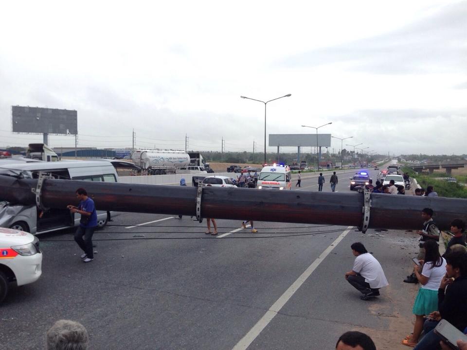 เหตุเกิด เมื่อเวลา 16.40 รถเครนขนาดใหญ่ ล้มลงมาทับ ผู้ใช้ถนน ทำให้ มีผู้เสียชีวิต 1 ราย บาดเจ็บ 5 ราย และ ณ ตอนนี้ 22.42 ยังเครียทางไม่ได้ ทำให้ รถติดเป็นจำนวนมาก