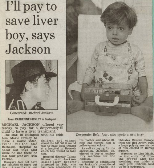 ไมเคิล แจ๊คสันและลิซ่า มารี ภรรยาในขณะนั้นได้ไปเยี่ยม the Bethesda Children's Hospital ในเมืองบูดาเปสต์ , ประเทศฮังการี