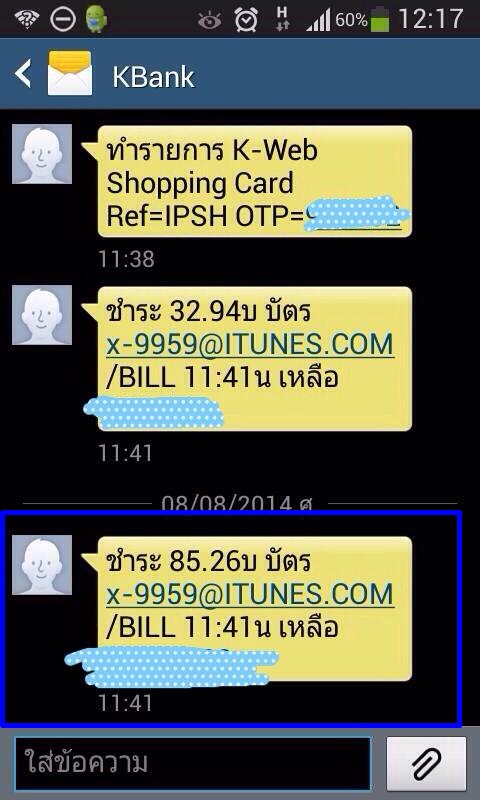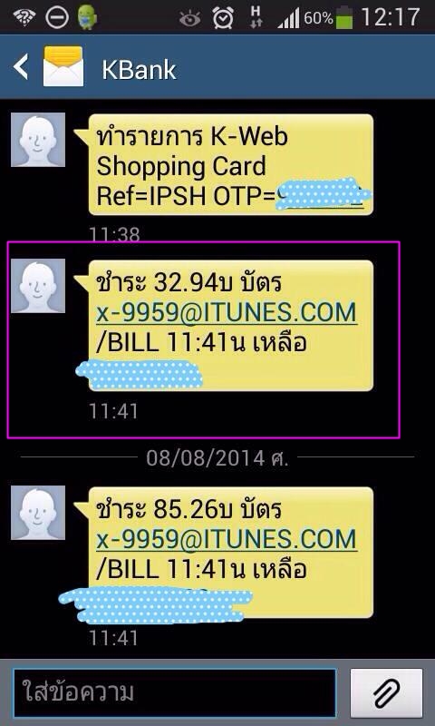 เราก็กดซื้อเลย พอกดซื้อเสร็จ มีข้อความเข้าโทรศัพท์แฟนเรา