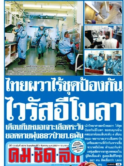 **** ประเทศไทยเอางบพัฒนาประเทศไปไหนกันหมด - ห้องปฎิบัติการตรวจเชื้อ "อีโบล่า" เเละ ชุดป้องกัน ไม่มี **** (อินทรีแดง)