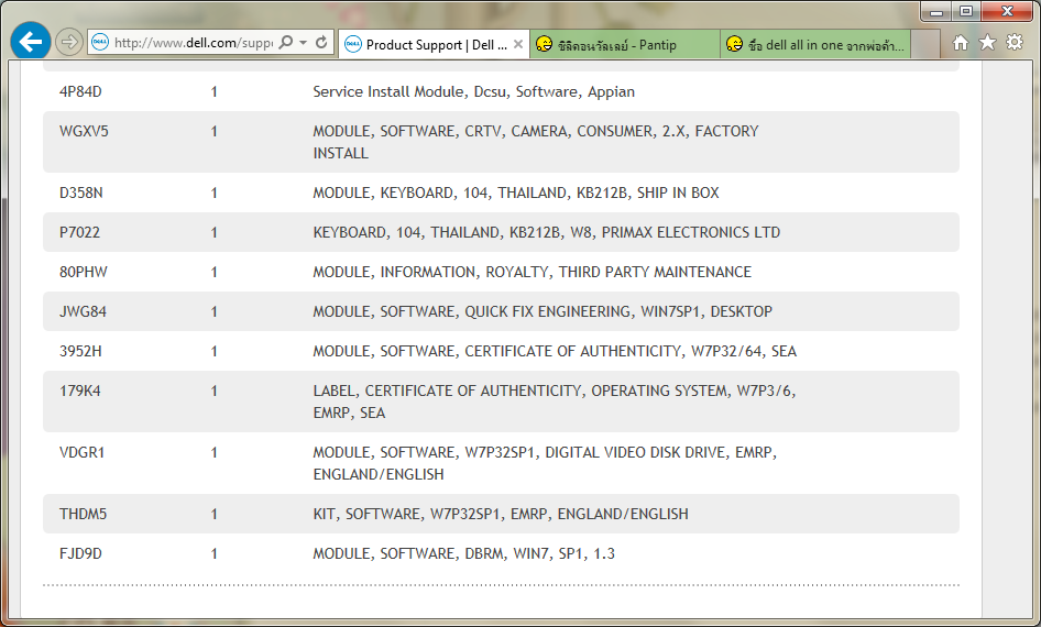 ข้อมูลจาก web dell ที่ค้นจาก service tag