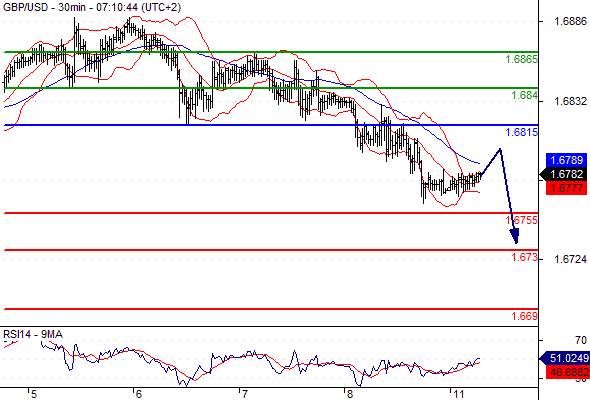 Our preference: Short positions below 1.6815 with targets @ 1.6755 & 1.673 in extension.