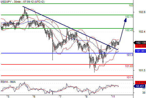 Our preference: Long positions above 101.9 with targets @ 102.45 & 102.75 in extension.