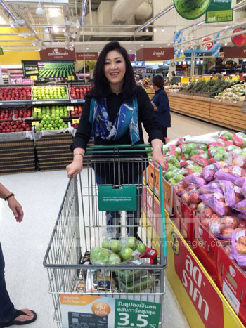 โดย น.ส.ยิ่งลักษณ์ มีสีหน้ายิ้มแย้มแจ่มใส และได้จับจ่ายซื้อของใช้ในครัวประเภทอาหารแห้ง เครื่องกระป๋อง และอาหารสดจำนวนมาก โดยบอกว่าไม่ได้ซื้อของที่เมืองไทยนานแล้ว ที่ซื้อวันนี้ก็จะเก็บไว้ใช้ในครัว รวมถึงจะแบ่งส่วนหนึ่งเอาไว้ทำบุญ