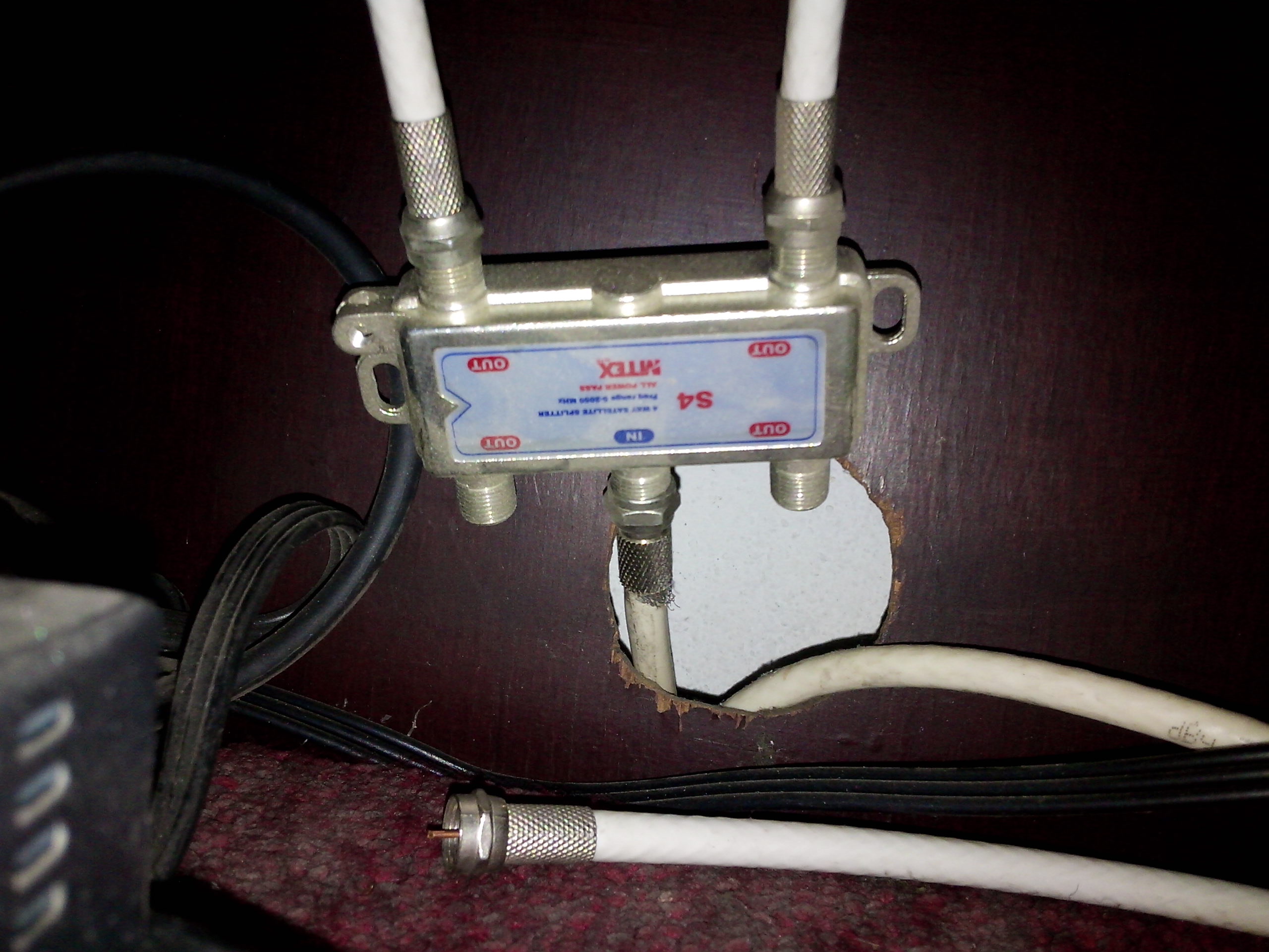 สายเส้นล่างมาจากจานดาวเทียม เส้นซ้ายที่ออกมาไปกล่องทรู เส้นขวาลอยไว้เฉยๆ