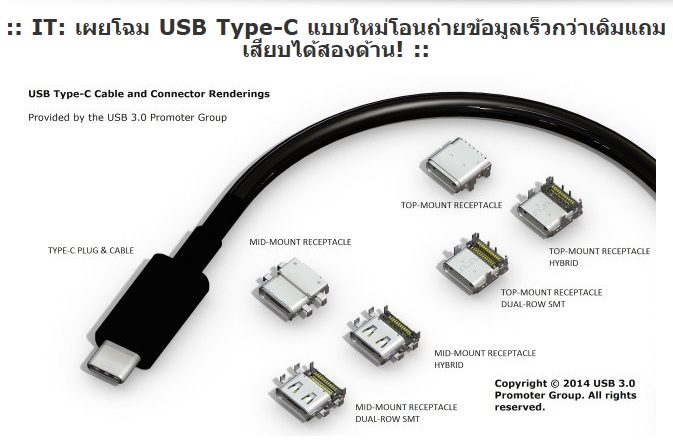 เผยโฉม USB Type-C แบบใหม่ โอนถ่ายข้อมูลเร็วกว่าเดิม แถมเสียบได้สองด้าน!