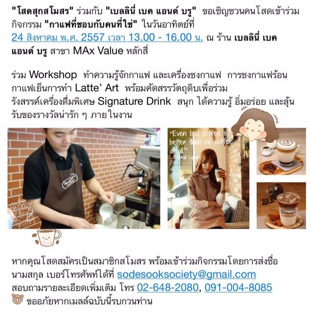 "โสดสุกสโมสร" ร่วมกับ "เบลลินี่ เบค แอนด์ บรู" ขอเชิญคนโสดเข้าร่วมกิจกรรม "กาแฟที่ชอบกับคนที่ใช่"