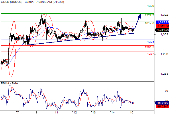 Our preference: Long positions above 1305 with targets @ 1317.5 & 1322.7 in extension.