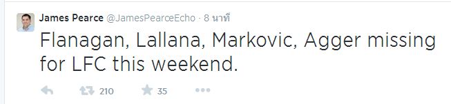 เเอ๊กเกอร์ / ฟลาเนเก้น / ลัลลาน่า / มาร์โควิช จะไม่มีชื่อในเกมส์พบ เซาท์วันอาทิตย์นี้ครับ