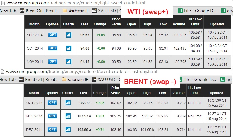 ◆ หรือแม้แต่น้ำมันเองก็ตาม swapจะไม่คงที่ เป็นได้ทั้งบวก และลบ อย่าง ณ ตอนนี้ถ้าใครเล่น WTIฝั่ง long ก็สบายหน่อยครับ ได้swapบวก แต่ถ้าlong BRENTก็ซวยหน่อย swapเป็นลบ (ขนาดน้ำมันเหมือนกันนะเนี่ย)