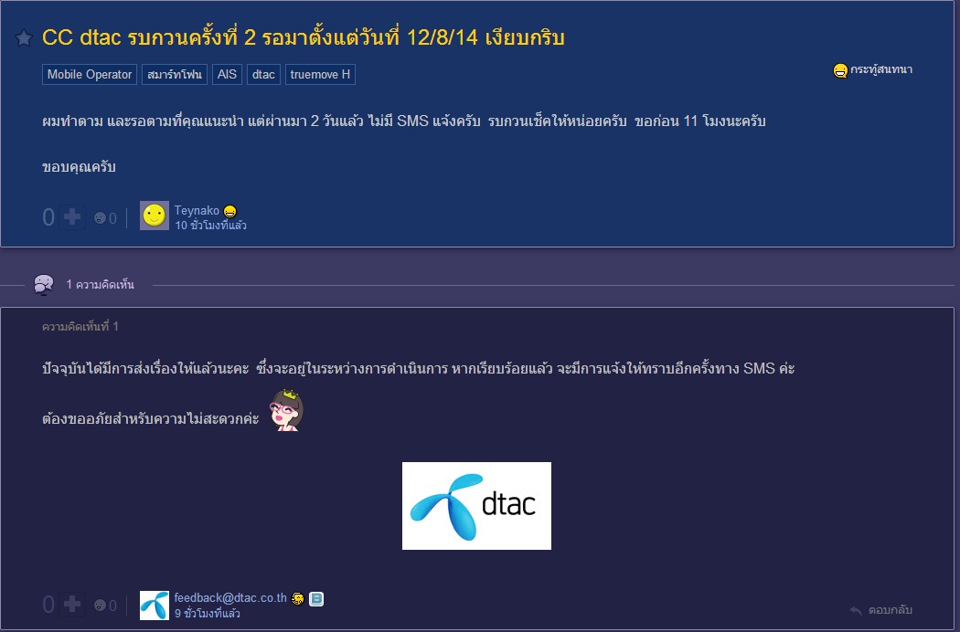 CC dtac รบกวนครั้งที่ 4 รอมาตั้งแต่วันที่ 12/8/14 เงียบกริบ สรุปคุณแค่หลอกลูกค้าไปวันๆๆ คงต้องลากับ ดีแตก