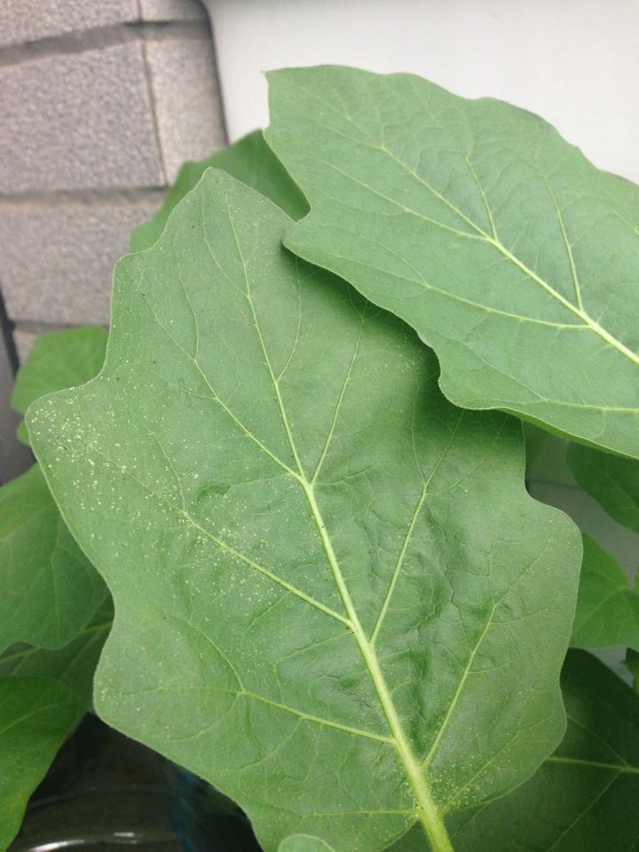 ตอนนี้ต้นมะเขือไข่เต่า กำลังงามมากๆค่ะ แต่มีปัญหาที่ใบ จากภาพด้านล่าง ใบบางต้นจะเป็นลายจุดขาว