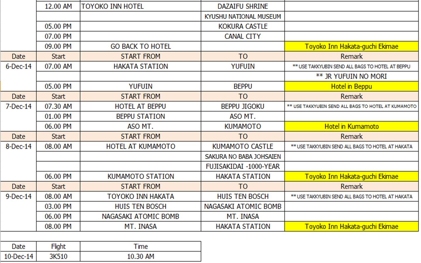รบกวนดูโปรแกรมเที่ยวคิวชูค่ะ ^^