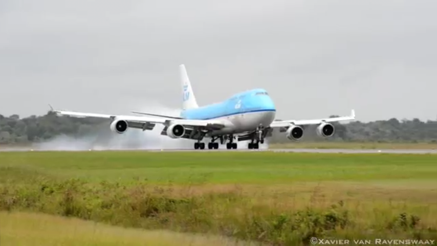 สงสัยว่ากัปตัน ตอนลงจอด คงบังคับ ให้ล้อหน้า ลอยไม่แตะพื้น จนกระทั่ง จอดสนิท หรือเปล่าครับ ??? คืออย่างน้อย เมื่อไม่มีล้อ มันก็น่าจะมีเหล็กครูดที่พื้นรันเวย์ บ้า