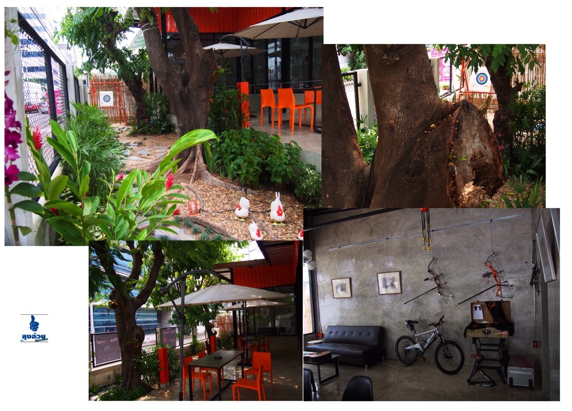 เจ้าของร้านคุยกันเองครับ ชอบ ยิงธนู! เลย เอาที่ว่างข้างร้าน เป็นที่ฝึกยิงธนู (แบบหัว BBคือ ยาง ไม่มีอันตราย) ไว้ให้ลูกค้ายึดมือยึดไม้เล่น (ฟรี)
