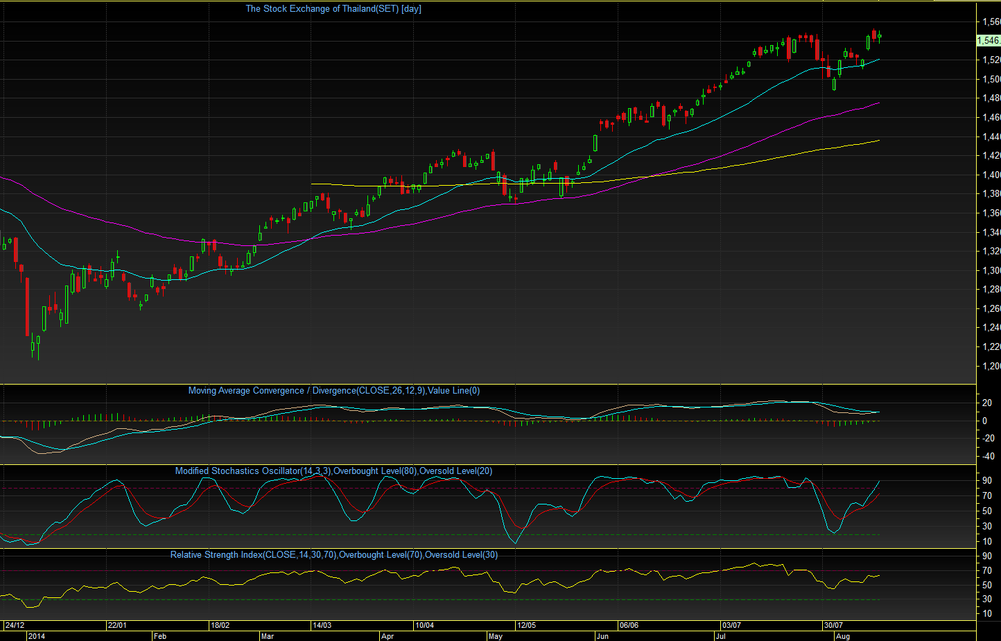 ขึ้นไปปิดที่ระดับ 1546 จุด +4.65 จุด วันนี้มาติดตามกันต่อว่า จะสามารถทะลุ High 1552 ขึ้นไปได้หรือไม่