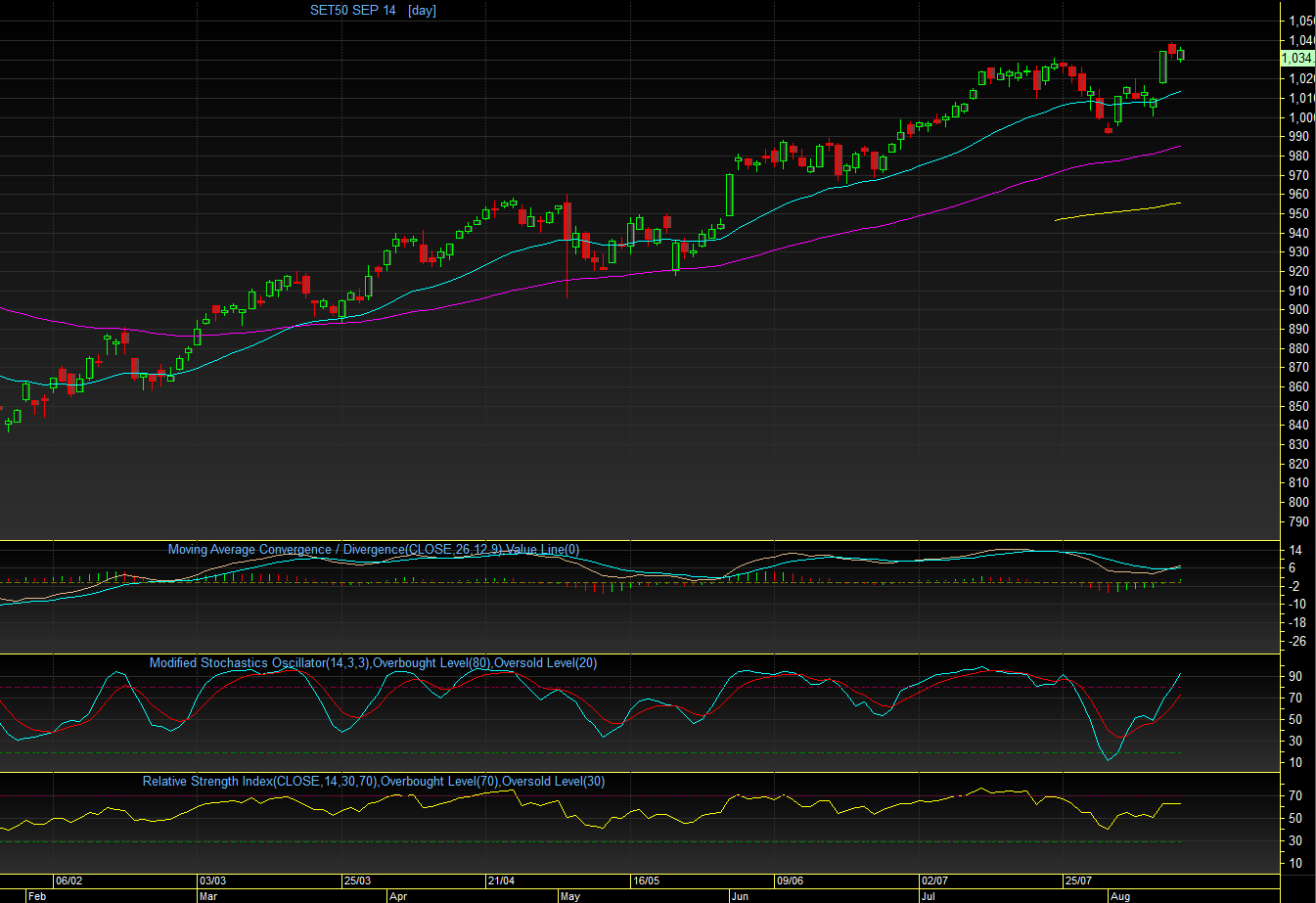 มีโอกสที่จะขึ้นไป Test High 1038.8 ถ้าผ่านได้ ก็คงพุ่งไปไกลแน่ / แต่ถ้าไม่ขึ้นไปได้ ระวัง อาจจะมีการ "พักตัว" ลงมาอีกครั้ง