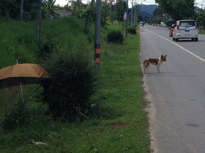 พิกัด จังหวัดภูเก็ต บริเวณ ริมถนนสายหลัก กวางตุ้งบ่อแร่ หมาตัวนี้ นั่งรอ นอนรอ อยู่ ตรงนี้ ที่เดิม มาเป็นเดือนแล้ว ไม่ไปไหนเลย ฝนตกแดดออก ก็รอ ใครเคยเห็น หรือ รู้จักเจ้าของ ฝากบอกที มันรออยู่ที่เดิมทุกวัน ถ้ามาจากกวางตุ้ง อยู่ขวามือ ก่อนถึง 7-11 บริวเวณป้าย อบต วิชิต... มีคนใจดีเอาร่ม เอาน้ำ อาหาร เอาผ้ามาวาง เวทนามาก ถ้าใครเห็นเวลาเขานอนมองถนน นั่งมองรถ ฝนตกก็ไม่ไปไหน... ไม่รู้จะทำไงดีแล้ว ได้แต่สงสาร แวะให้ข้าว ให้ขนม ใครผ่านไปมาก็ หาของกินติดมือไปมั้งน่ะ......