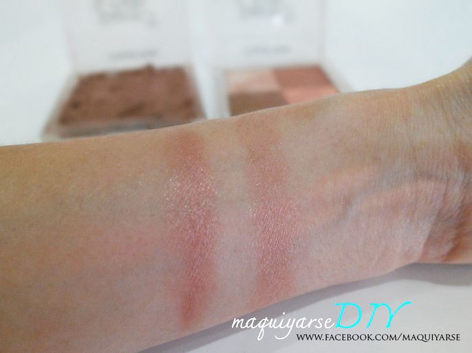 ลองปาดดู สีไม่แตกต่างมากนะคะ ตัวที่เป็นครีมจะเข้มกว่าค่ะ แค่นี้เราก็ได้บรอนเซอร์สวยๆกลับมาใช้แล้วค่ะ แถมยังติดทนด้วยนะ ^_^