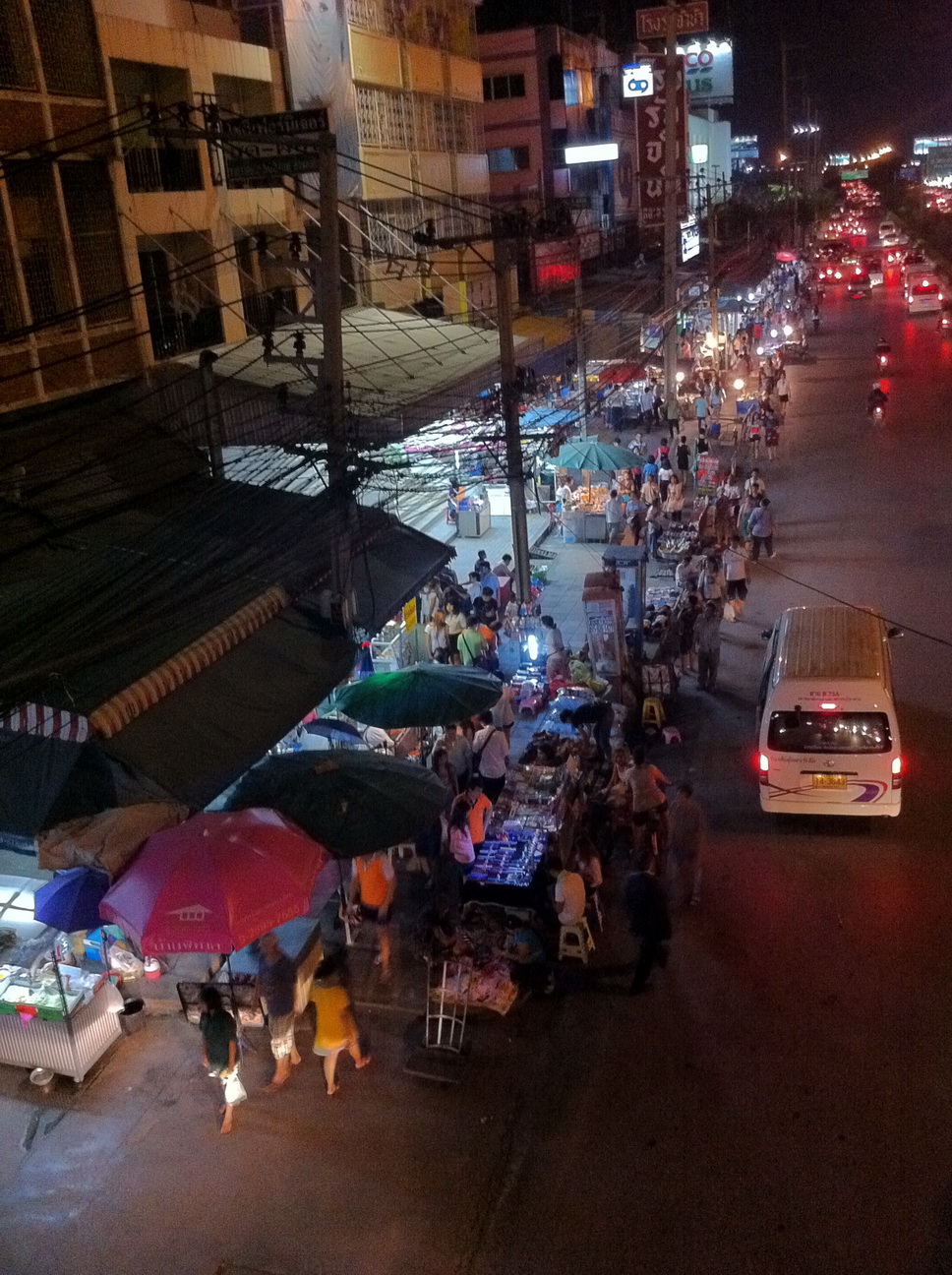 จากรูปถ่ายจากมือถือ เมื่อวันที่ 13 สค 2557 เวลาประมาณ 19.45 เนื่องจากเป็นวันหยุดต่อเนื่องยาวเลยทำให้มีคนเดินน้อย รถวิ่งน้อย แต่ก็ยังคงมีคนขายของบนทางเดินอยู่ดี เลยมีโอกาสได้ถ่ายรูปจากบนสะพานลอย