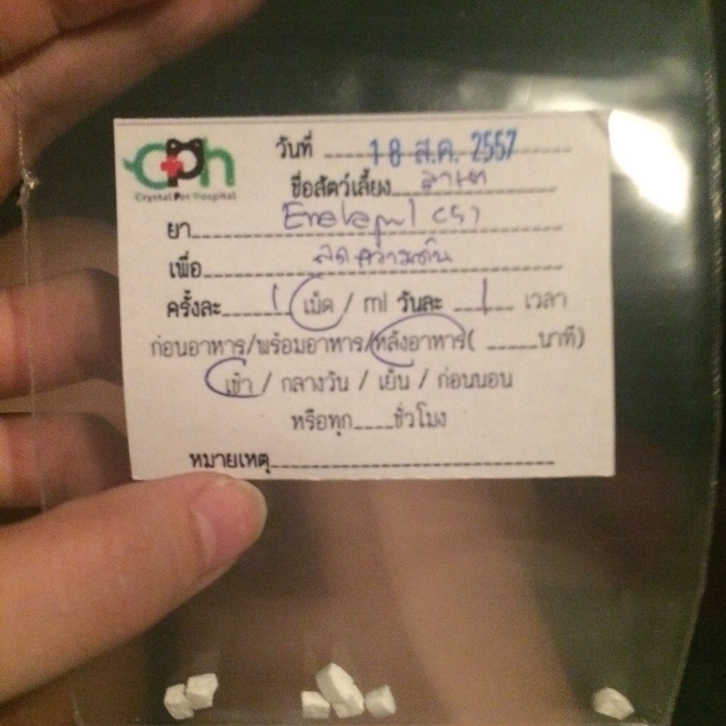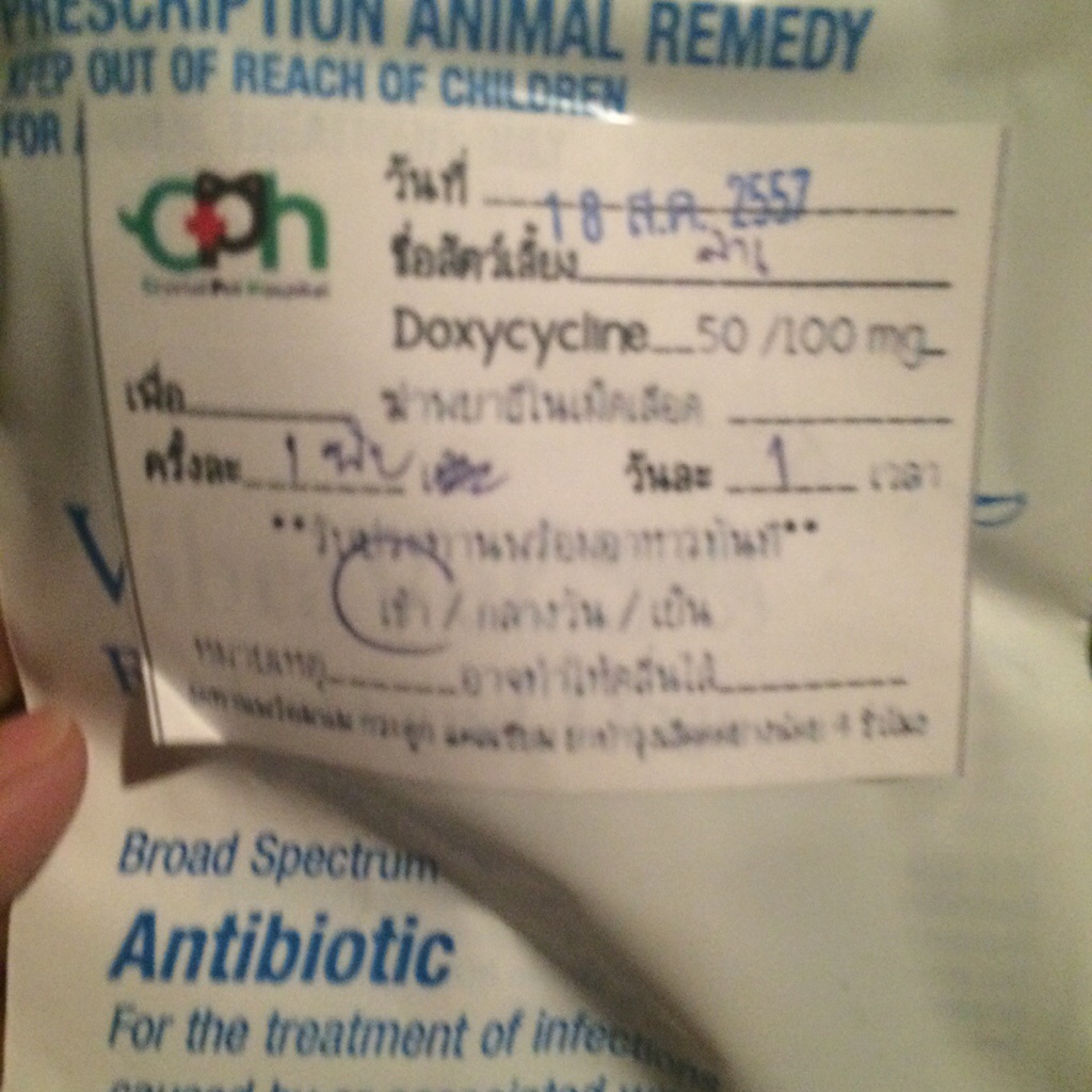 พอดีน้องหมาของเรามีอาการหายใจไม่ค่อยสะดวก ไปหาหมอพบว่าหลอดลมค่อนข้างตีบ ปอดชื้นเล็กน้อย จึงให้พ่นยา5วัน และให้ยามากิน ซึ่งยาตัวหนึ่งเป็นยาปฏิชีวนะมีอายุ14วัน ตอนนี้ป้อนไปแล้ว 8 วัน แต่หลังจากนี้เราไม่
