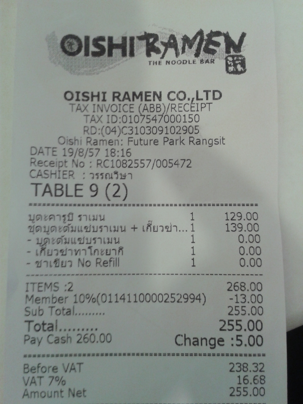 [CR] โออิชิ ราเมง บัตรสมาชิกลด 10% คำนวณยังไง?