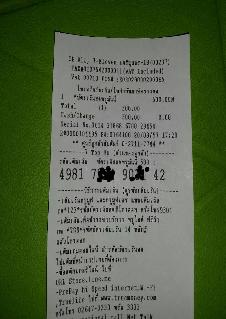 คราวนี้ขึ้นว่าบัตรใช้ไปแล้ว (แต่เงินไม่เข้าระบบ Line Store)