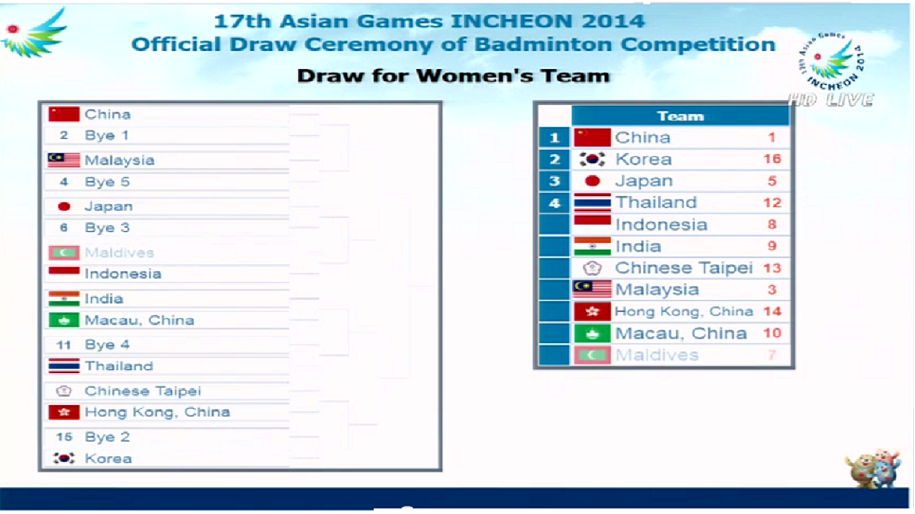 สายเอเชี่ยนเกมส์ประเภททีมออกแล้ว