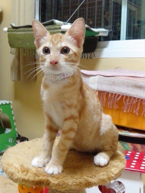 ลูกแมวสลิดสีเหลือง ดช. อายุประมาณ 2 เดือน เก็บมาจากข้างถนน กลัวรถทับตาย เพราะพี่น้องตายไปหลายตัวแล้ว