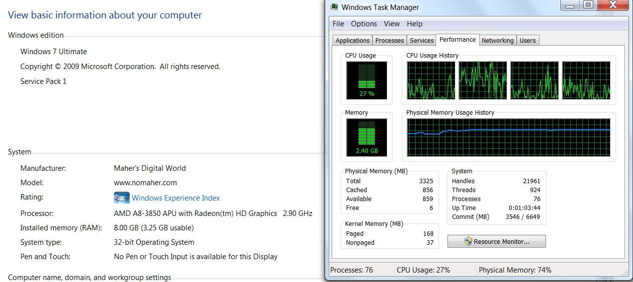 ทำไม Task Manager ถึงแสดง Memory แค่ 3 GB เองครับ ทั้งๆที่ผมใส่ไป 8 GB Win 64 bit แถมเวลาใช้งานยังรู้สึกคอมอืดๆเหมือนมีแค่ 3 GB จริงๆด้วยครับ หรือปัญหาจะมาจากอย่างอื่น ผมต้องเปลี่ยนอะไรไหมครับ อันนี
