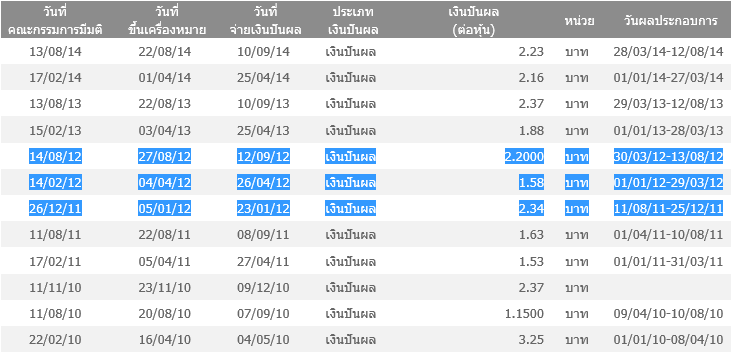 สังเกตุตรงที่ผม highlight นะครับ 3 ครั้ง ปันผลในปีเดียวกันครบทุกรอบผลประกอบการ