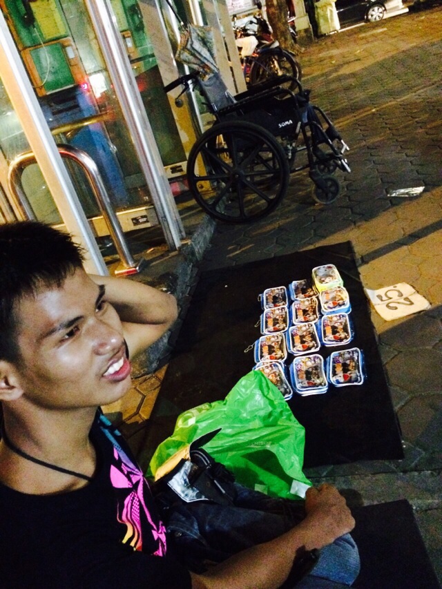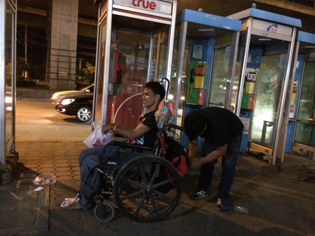 พี่ชายเรา หรือคนละแวกนั้นใจดีทุกคน ช่วยเก็บร้าน และเข็นพาข้ามถนน