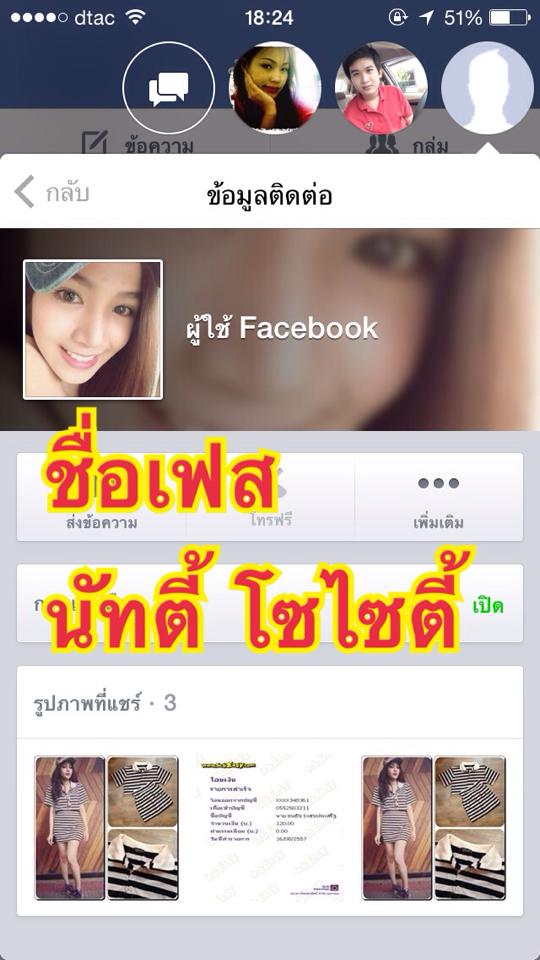 มี แม่ค้าขี้โกง เฟสบุ๊คชื่อ นัทตี้ โซไซตี้ หลอกโอนเงินแต่ได้ของไม่ตรงตามสั่งนะคะ รูปที่ขึ้นรูปโปรก็ไม่ใช่ตัวจริง
