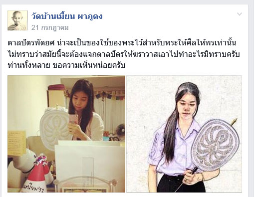 เนื่องจากเห็นพระคุยกัน เรื่องไม่ควรมอบตาลปัตรให้ฆราวาส บอกว่าตาลปัตรเป็นบริขารของพระ