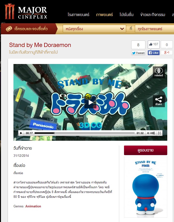 เว็บไซต์ majorcineplex ได้โพสต์ ตัวอย่างหนัง จากทางญี่ปุ่น ชื่อ STAND BY ME Doraemon เเต่ชื่อได้เมื่อได้ยิน สาวกโดเรมอนถึงกลับอึ้งว่า แปลมาเเบบนี้ได้ไง โดยได้ให้ชื่อว่า “โนบิตะ กับทานุกิสีฟ้าที